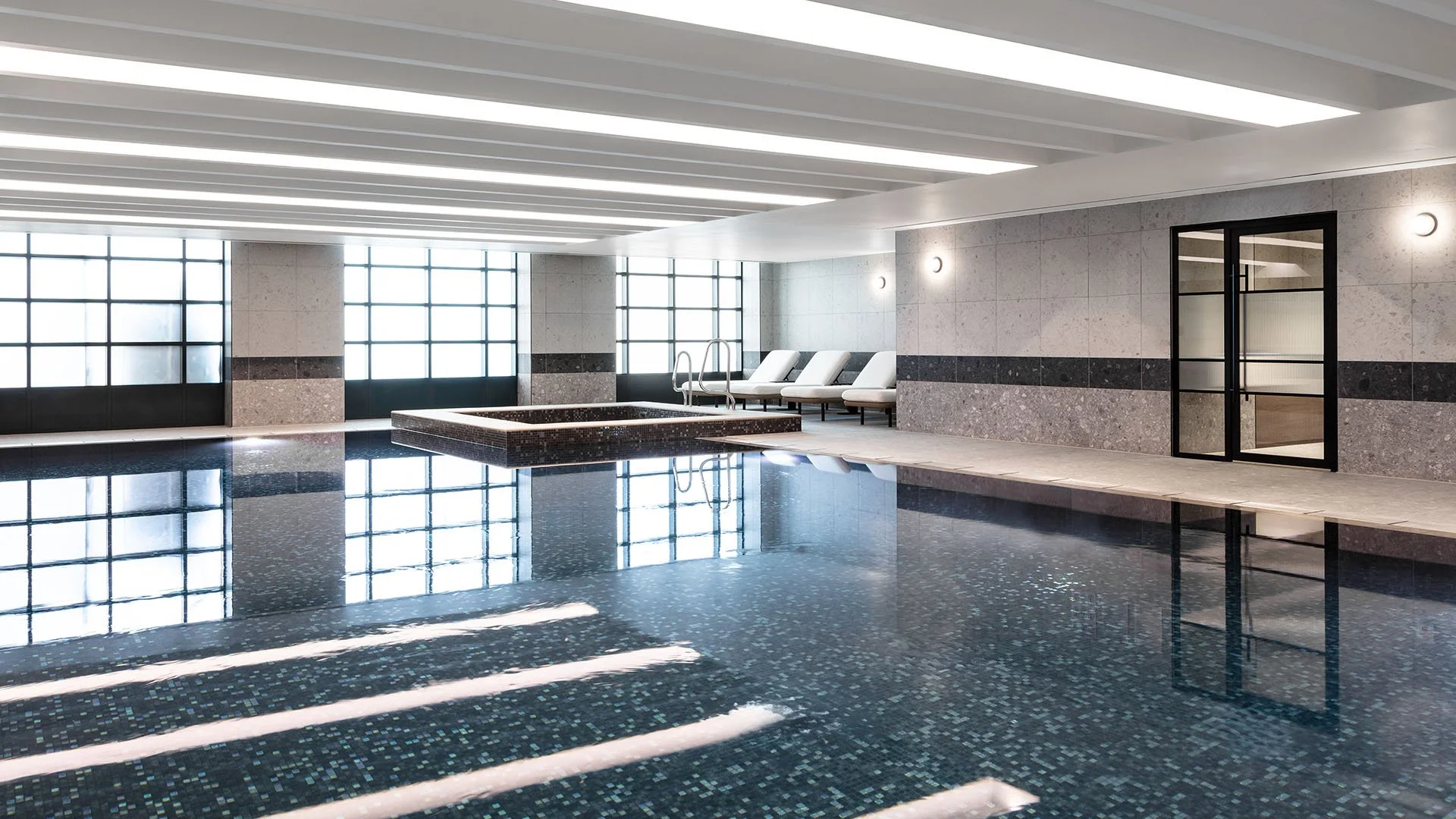 Elegant residents lobby - 24-hour concierge service - State-of-the-art gym and yoga studio - Luxurious swimming pool and spa - Private cinema room - Golf simulator - Stylish café - Flexible co-working spaces - Games room - Secure cycle storage and dedicated post room
